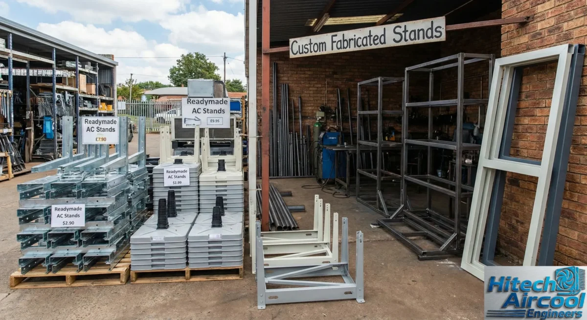 For non-standard sizes, heavy units, or specific site requirements, our custom fabrication service creates the perfect stand. We use angle iron or heavy-gauge steel, cut and weld to your exact dimensions. Options include additional bracing, specific heights, or mounting holes for vibration isolators.